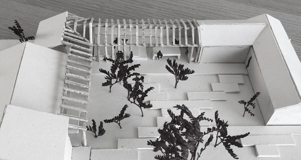 À travers la conception des espaces extérieurs, ce sont d’autres usages que nous proposons, complémentaires aux usages intérieurs et permettant d’imbriquer les espaces vécus dans un dialogue perpétuel, un entre-deux riche et fécond. Nous travaillons le site à partir de ses ressources et façonnons le projet par la maquette pour une compréhension des enjeux plus aisée et ancrée dans son milieu.