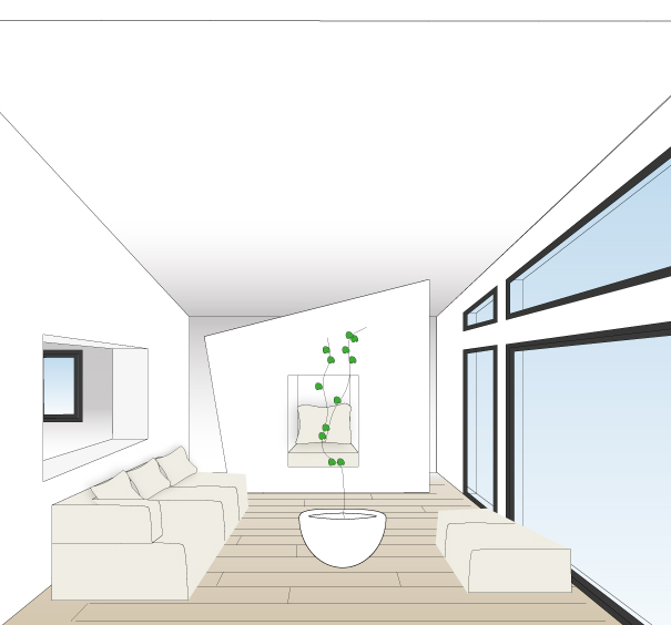 Nous utiliserons le principe même du ma de l’architecture japonaise et rendre le parcours du visiteur intéressant et pimenté de pauses jusqu’au stockage de livres. L’intuition du visiteur doit y être facilitée pour que le parcours se fasse de façon naturelle. Nous intégrerons une autre fonction, telle qu’une assise pour que le module puisse rentrer en connexion avec la fonction sociale du salon, complétée par une bibliothèque enfants et une bibliothèque adulte.